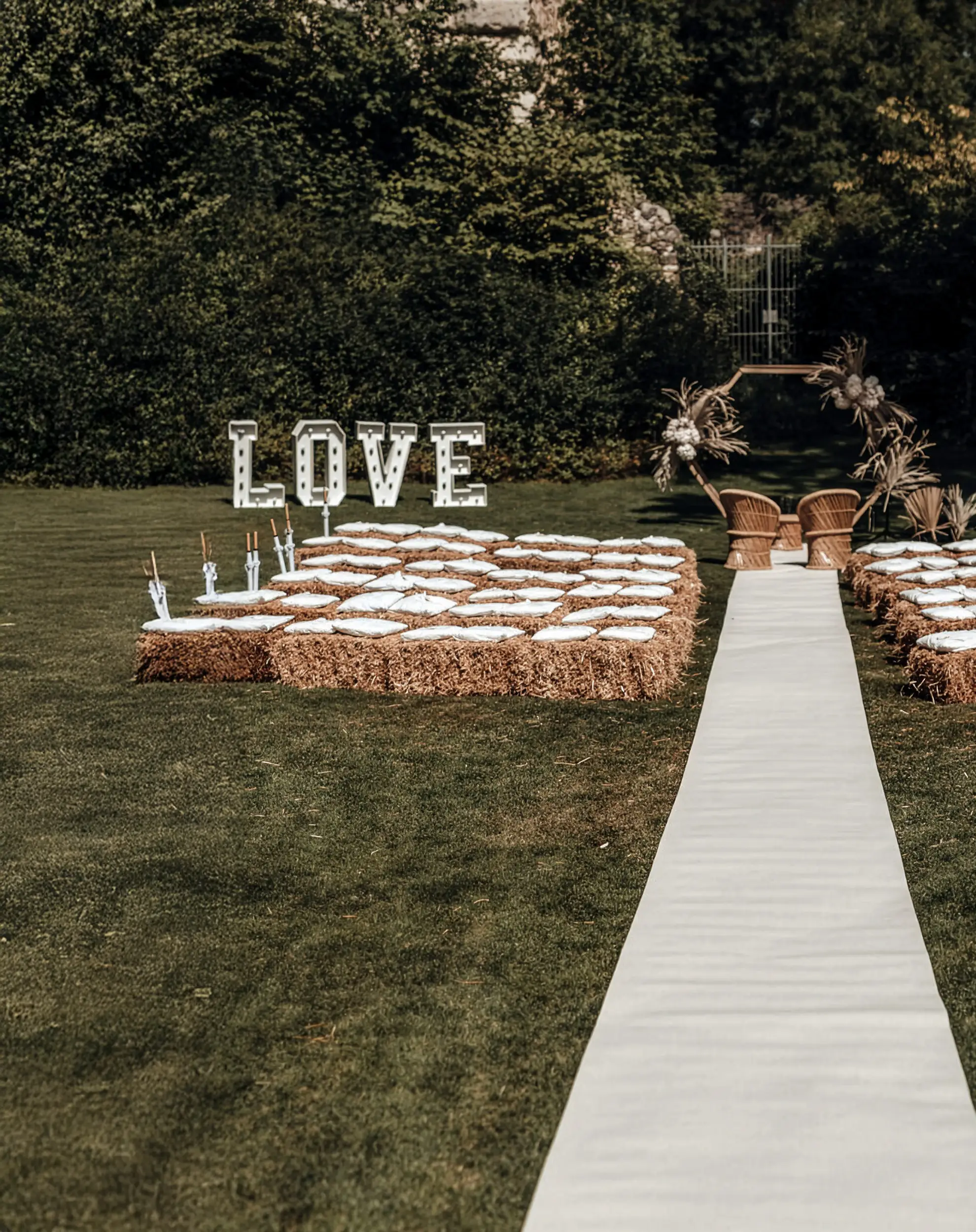 Als stilvoller Mittelpunkt deiner Location oder als eleganter Fotohintergrund schaffen sie eine warme, romantische Atmosphäre und sorgen für unvergessliche Bilder. Die einzelnen Elemente werden miteinander verbunden und benötigen lediglich eine herkömmliche Steckdose – unkompliziert im Aufbau, eindrucksvoll im Auftritt. Bei trockenem Wetter können die Buchstaben auch im Außenbereich eingesetzt werden. Für maximale Flexibilität kannst du die LOVE-Buchstaben bereits am Vortag abholen und ganz entspannt am Tag danach zurückbringen.